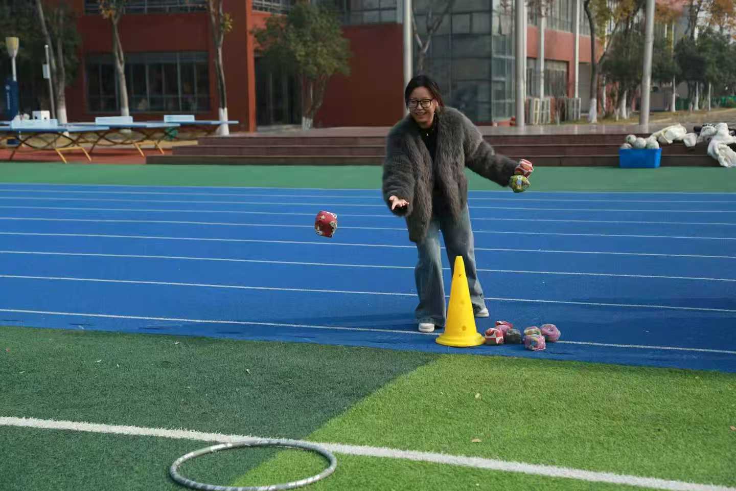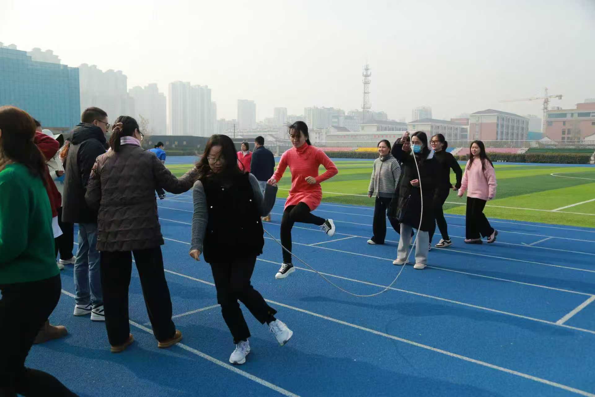 本次趣味运动会设立了投沙包、袋鼠跳、两分钟跳长绳三大特色项目,各项目既兼顾趣味性与竞技性,也考验了教职工们的团队协作水平。投沙包项目现场,老师们屏气凝神,瞄准目标,每次成功投掷都伴随着阵阵欢呼;袋鼠接力跳时,老师们蹦跳接力,交接默契,尽显拼搏活力;两分钟跳长绳项目则需要团队的节奏配合,摇绳、起跳,教师们找准节奏鱼贯而入,整齐的跳跃身影与翻飞的长绳构成了一道活力满满的校园风景线。