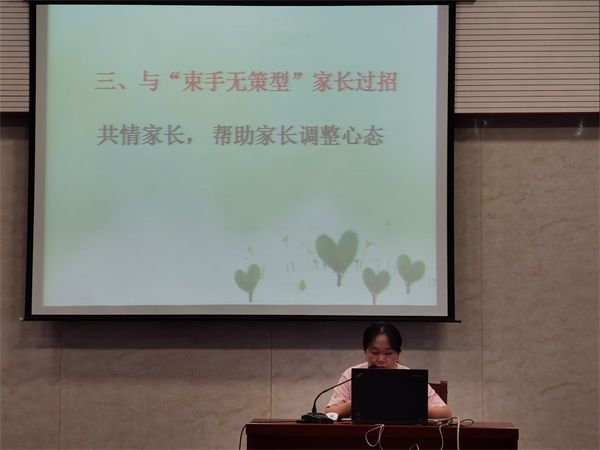 “怎样和家长高效沟通,共同助力孩子的成长”是每个班主任每天都在不断探索的问题。锡山区德育能手李萍老师结合自己工作多年积累的经验,给班主任们作了题为《应对不同类型家长的“那些招”》的讲座。讲座中,李老师针对居高强势型、甩手放任型和束手无策型这三种类型的家长,用鲜活、接地气的个案,和班主任们分享与家长建立信任的沟通技巧。老师们在轻松的氛围中学到了真正有效地解决问题的方式,个个如获至宝。