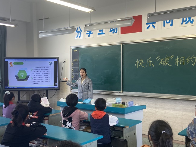 晨会课在悠扬悦耳的歌声中结束。在动听的旋律中,石榴娃把低碳意识深深记入心间。就像《快乐“碳”相约》中唱的那样,“双碳”目标的实现靠的是所有人,人人要从身边小事做起,争做绿色小达人。