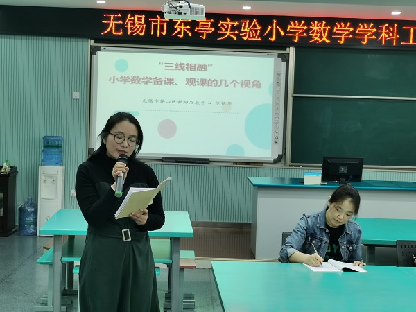 最后范艳华老师就《“三线相融”小学数学备课、观课的几个视角》进行了一个讲座,共同探讨直面真实数学问题,深入研究儿童的思维过程,关注儿童的认知困惑,将儿童视角与数学本质有机融合,基于学生,基于教材,从而更好地促进深度学习。