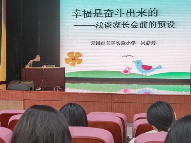 吴静芳老师作了题为《幸福是奋斗出来的》讲座,和青年老师们谈了家长会前的准备工作。她认为班主任首先要美化教室环境,给家长留下最好的第一印象。同时应注意角色转变、自己的言行举止,端庄而不拘谨,朴素而不土气,凸显出教师的优雅气质。要为会议做好充分的准备,让家长感觉到你的能力和敬业。最重要的是要做好和家长的沟通工作,这也是难点所在。