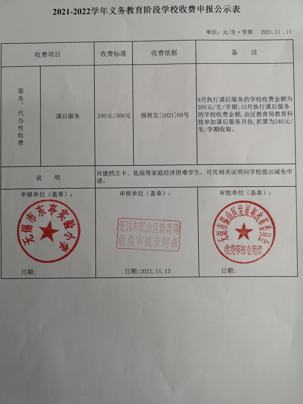 东小公开〔2021年〕54号 课后服务收费公示