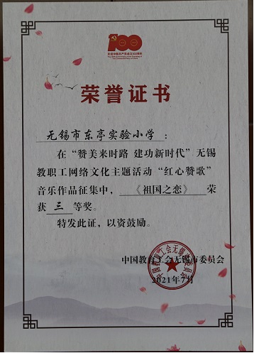 在无锡市教育工会组织的“书香三八”读书活动中,我校李健老师获得摄影阅读一等奖。在“赞美来时路,建功新时代”无锡教职工网络文化主题“红心赞歌”音乐作品中,我校张雯老师的《祖国之恋》荣获三等奖。