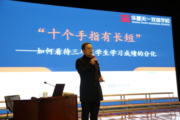 为切实响应国家“双减”政策,真正实现提质增效。11月29日,无锡市东亭实验小学三部教师在报告厅听取了华夏天一双语学校王新刚校长《“十个手指有长短”——如何看待三年级学习成绩的分化》的精彩讲座。