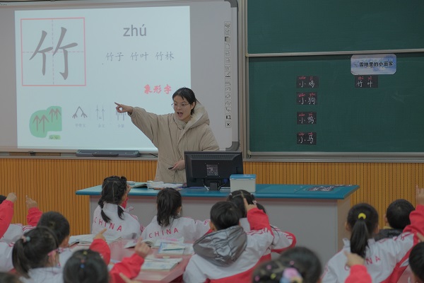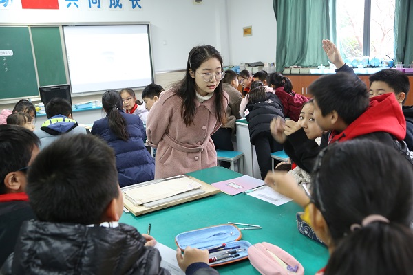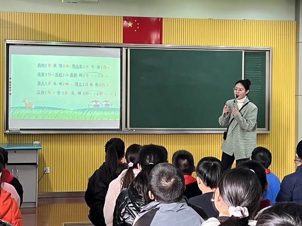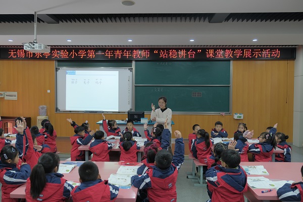 语文会场展风采:刘艳、沈诗华、沈力、田怡丹、高雅、陈萍萍、李佳佳、熊彦琳这八位新教师为这次展示课做了充分的准备,在师傅的指导下,多次磨课,反复试上,最终上出了各自的风采,真正做到了“站稳讲台”。老师们以教材文本为依托,仔细研读,根据学生学段特点,进行课堂教学设计。老师们教态亲切自然,或以形象直观的多媒体教学,拉近文本与学生之间的距离;或在教学中不断创新,充分发挥孩子们的想象力;或让学生以读为主,引导学生在读中学、思中悟;或通过师生演绎的方式,为学生营造和谐愉悦的学习氛围,引导学生与文本对话,帮助他们更深入地理解文章,使其学习自然而然地发生。