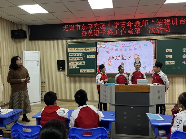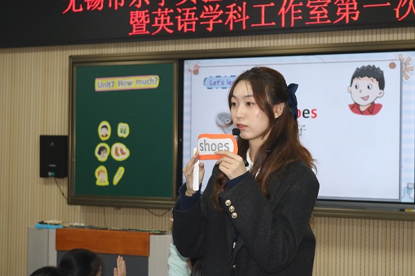 英语专场中,九位工作仅数月的年轻小将们围绕story time中的对话呈现了九节别出心裁的课堂。沈果、李欣、金怡和陈宇婷四位老师分别呈现了三上Unit8 Happy New Year!Story time板块教学。三位老师课堂设计完整精炼,趣味性和逻辑性兼具,逐步深入,层次感强。沈彬、林晓颖和朱纯瑜三位老师共同执教四上Unit7 How much? Story time板块。他们教态亲切,单词教学细致入微,还创设情境,将文本的解读变得更具故事感。最后,赵悦、张蕾两位老师分别执教五上Unit8 At Christmas Story time板块,他们教学活动丰富,课堂生动灵活,十分有趣。