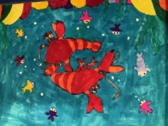 同学们笔下的的虾兵蟹将非常憨态可掬,圆圆的身体,穿着坚硬的铠甲,瞪着突出的眼睛,挥舞着坚硬的大钳子,走路的时候也是“不可一世”。在同学们的奇思妙想中,他们还在水中巡逻放哨呢!