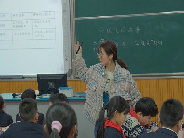 张莹老师执教五年级“快乐读书吧”《中国民间故事》,她用《田螺姑娘》引出民间故事中的三个神奇之处:人物、宝物、法术,接着借用表格这一支架,让学生分别从其他民间故事中找出这三个神奇之处,抓住共性,体会神奇之妙。最后,张老师让学生用上三个神奇之处进行续写想象。整堂课始终围绕“民间故事的神奇”这一主线行进,学生有所思,有所得。